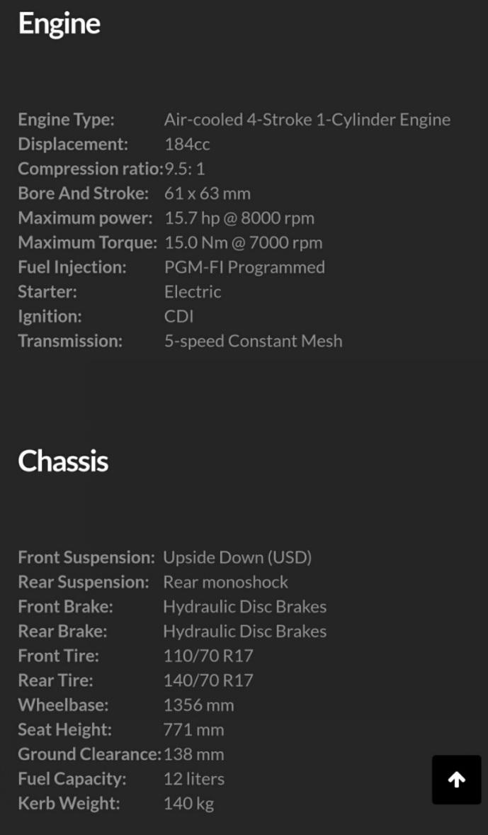 (엔진은 CB160R의 엔진을 CB190R이 보어업 한 엔진으로 보임)