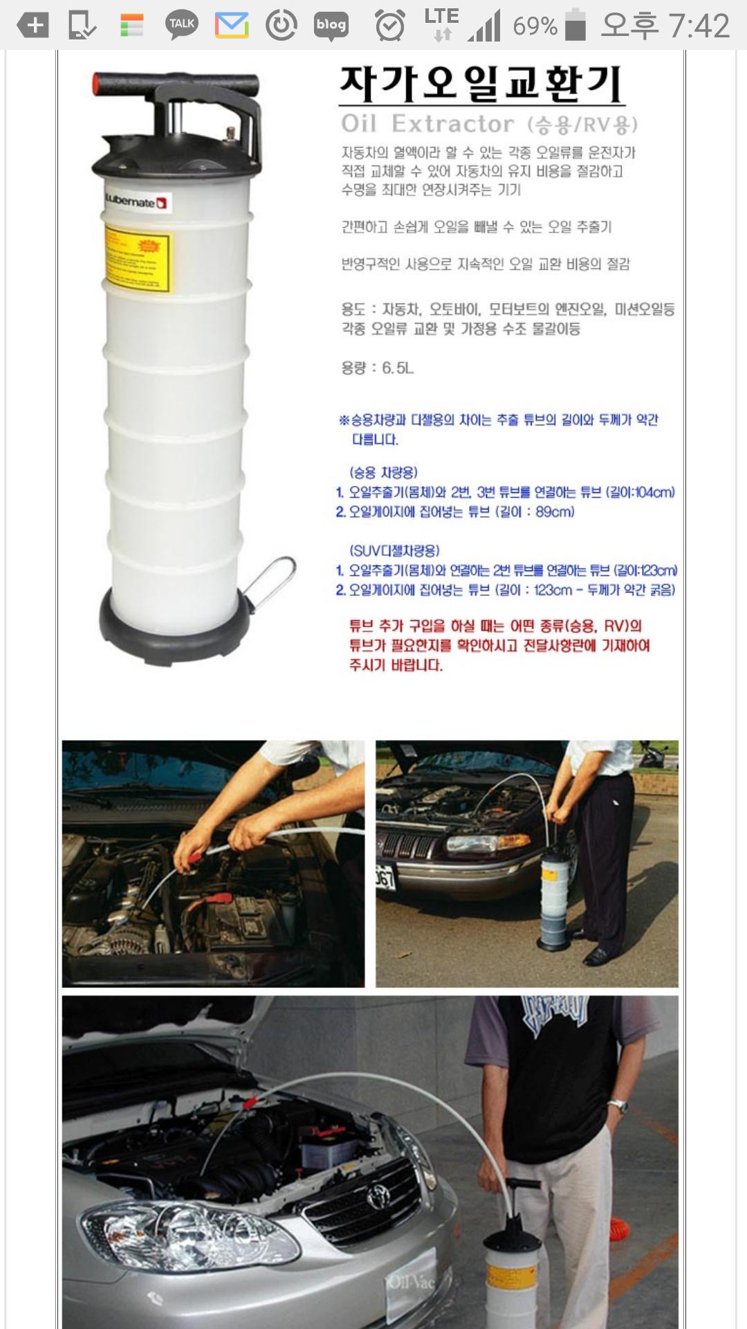 바이크도 저거로 빼시는분이 있어서(그분말로는 다빼고 드레인볼트뺐더니 오일이 하나도 안나왔을정도로 석션이 잘된다고 해서) 믿고 결제했네요~,~;;나중에 후기올려보겠습니다~~^^ |