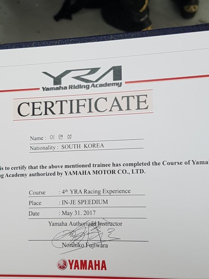 마지막으로 야마하 라이딩 아카데미 에서 수료증과 후지와라상 싸인해주시네요 ㅎ
