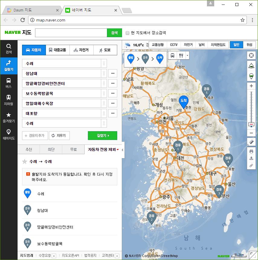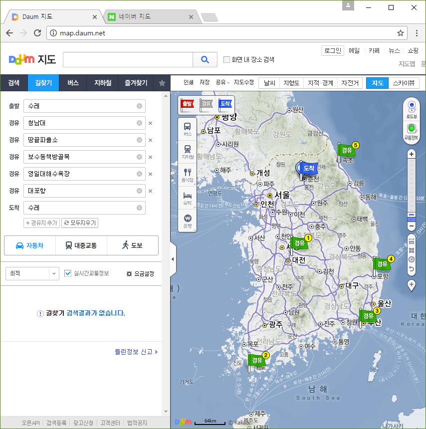 분명 육로로 이어진 경로인데 안내를 못합니다 ㅡㅡ...