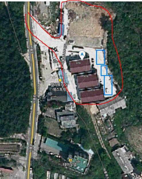 (네비 찍으면 종종 막혀있는 구길로 안내합니다. 하단에 테마모텔 찍고 오셔서