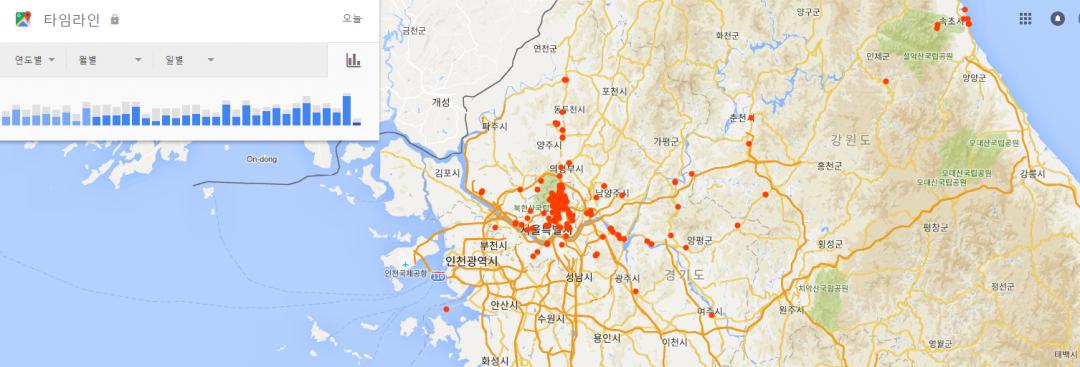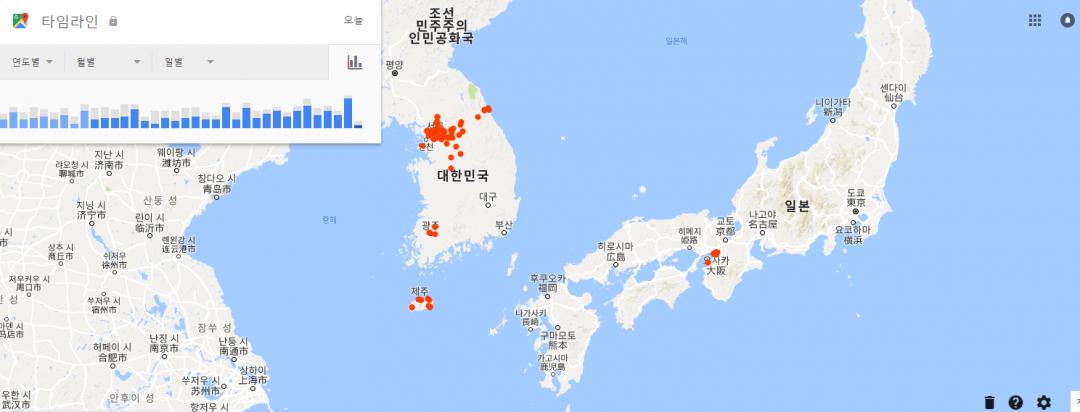 스마트폰 GPS 활성화 시키면 구글아이디로 로그인 되어있으면 이동경로