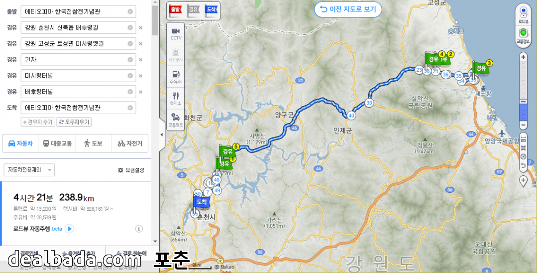 춘천에서 속초가 의외로 재미진 길의 연속이군요.... |