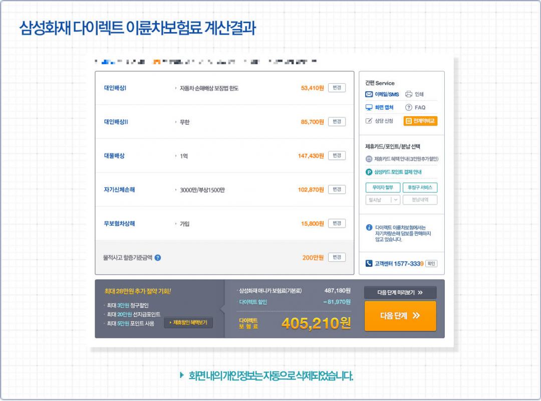 대인1,2 대물1억 자손 1500/3000 무보험차까지 종합으로 갱신하였습니다.