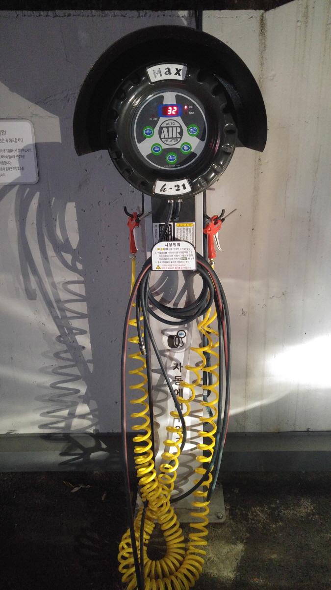 그리고 바이크 주차장에 타이어 자동공기주입기도 마련되어있어서 사용해봤습니다.