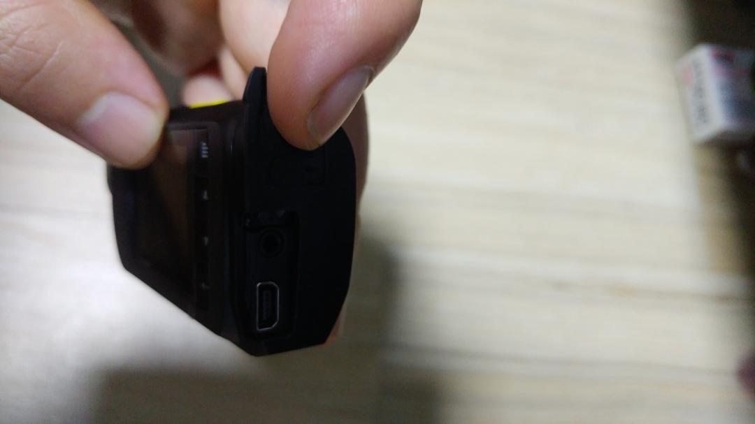 뒷커버에 고무캡이 있는데 이걸 열면 마이크단자와 충전단자가 드러납니다 충전중에도 모든 녹화가 되기 때문에