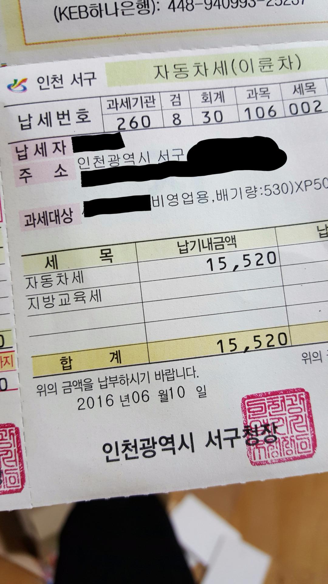 저 종이 뒤쪽에보시면 어떻게 부과됬는지 나오더라구요.. 저는 249cc인데 cc당 80원 하더라구요 |