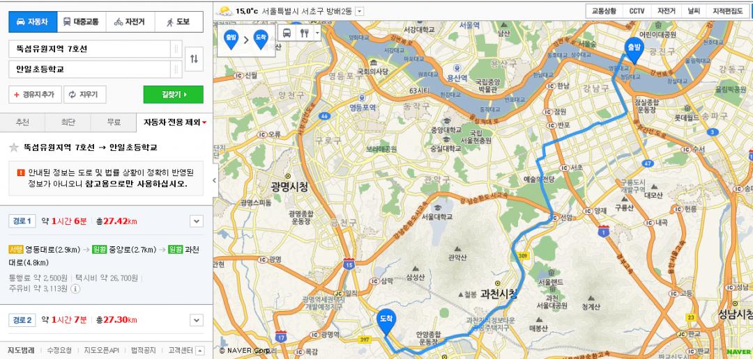 강남까지 계속 차가 밀려있던...