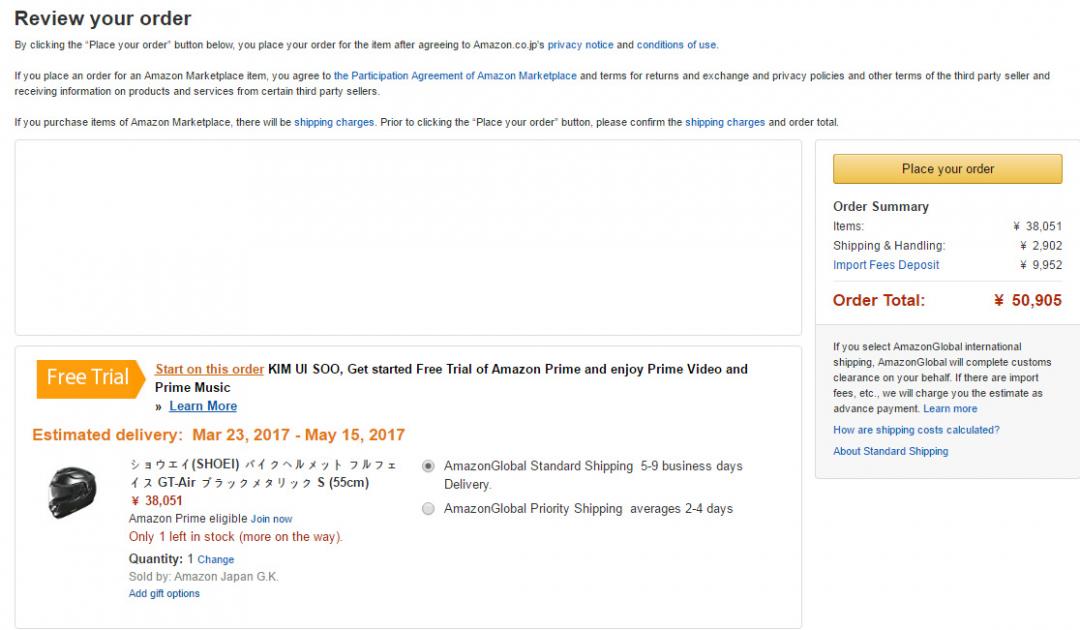 저도 일본 아마존에서 GT-Air(유광블랙) 직구해 보려고 견적을 내봤는데