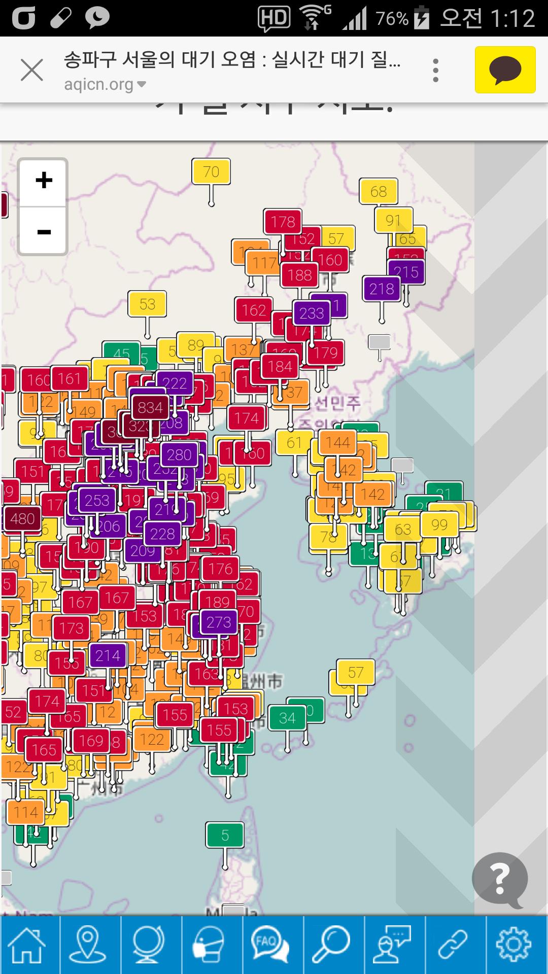 현시점에 중국쪽보면 대기지수가 심한곳은