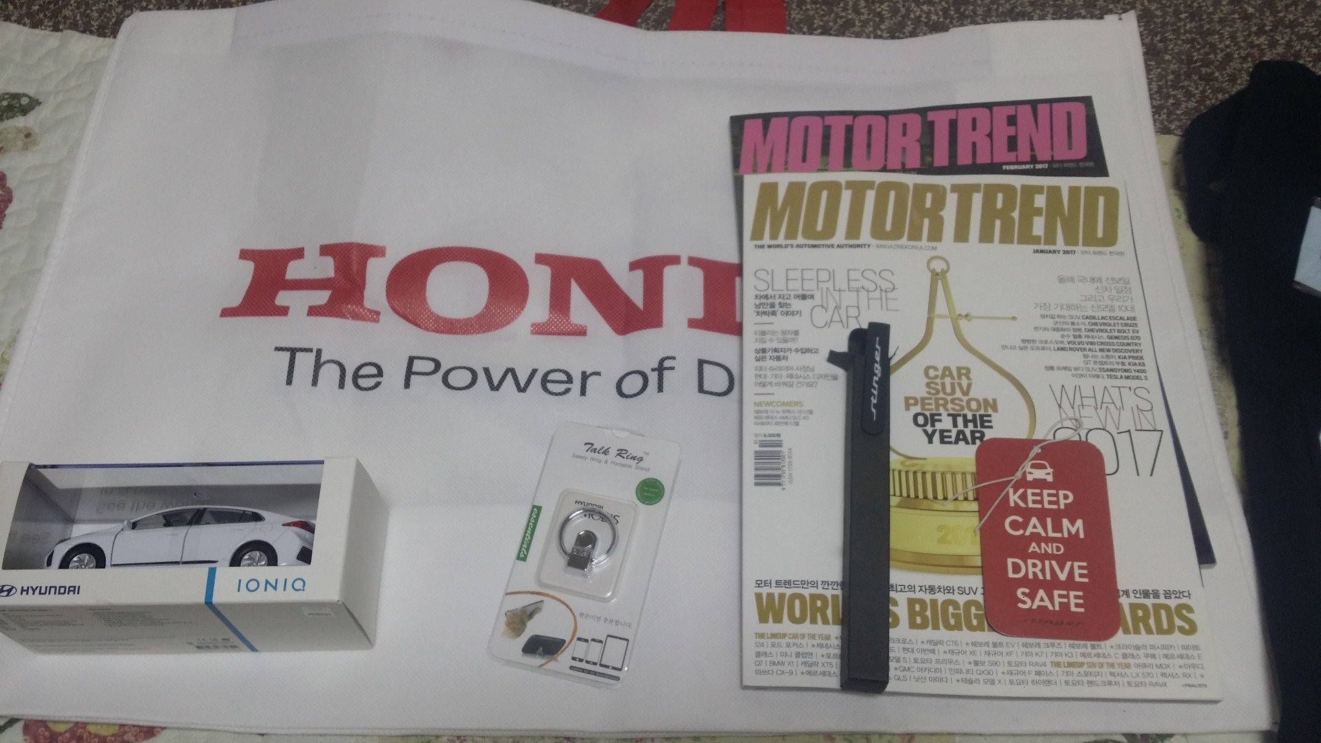 bmw는 주차전화번호판 주는데 M마크가 너무 커서 안받았고, 포르쉐는 생수와 브로마이드를 주는데 가방에안들어가서 안받았습니다.
