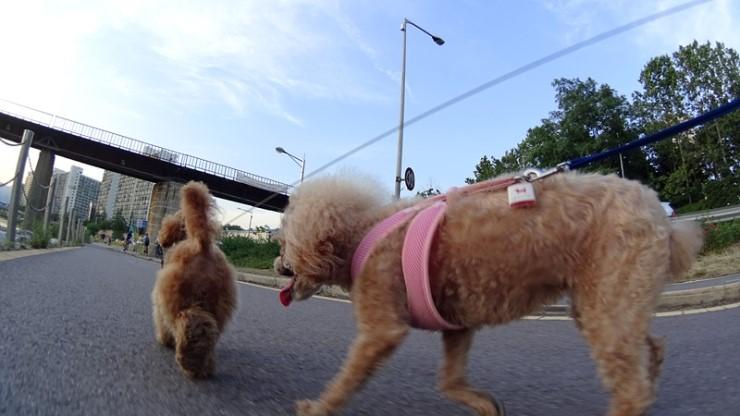 소니캠의 정품 셀카봉을 뒤집에서 촬영하면 강아지의 시선 높이에서 촬영도 가능합니다.