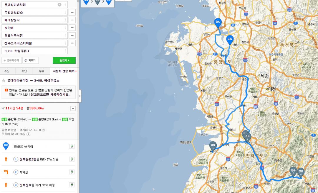 목적지는 충남 당진 → 전북 부안 →​ 전북 전주 →​ 지리산 오도재 →​ 전북 전주 →​ 충남 아산