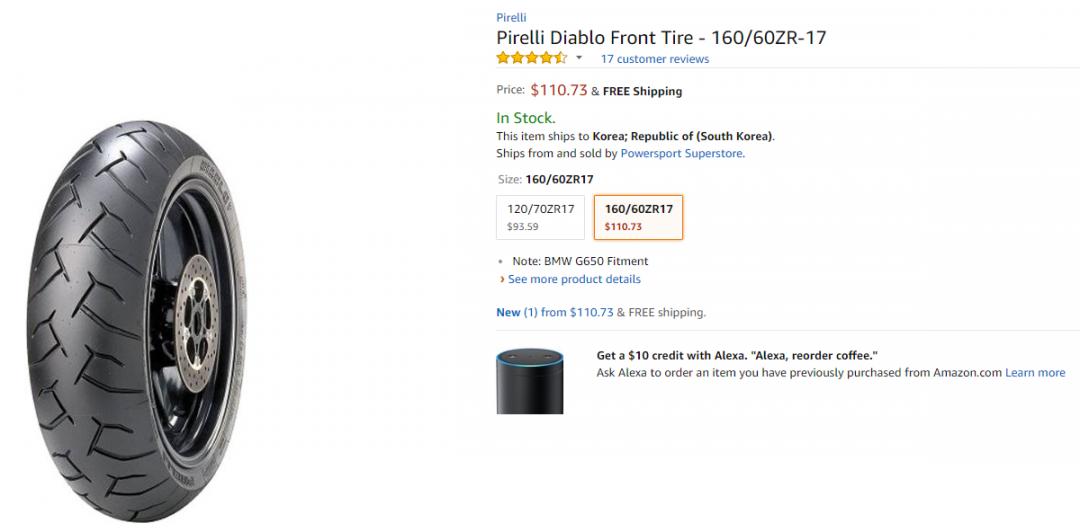 듀얼스포츠 타이어 대부분은 160/60-17 사이즈가 없네요 ㅜㅠ