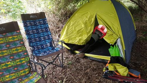 -릴렉스 의자 , 텐트, 자충매트, 본인프로텍트, 텐덤자 프로텍트, 여친, 낚시대 2개, 루어 5종 1셋, 바이크, 우비