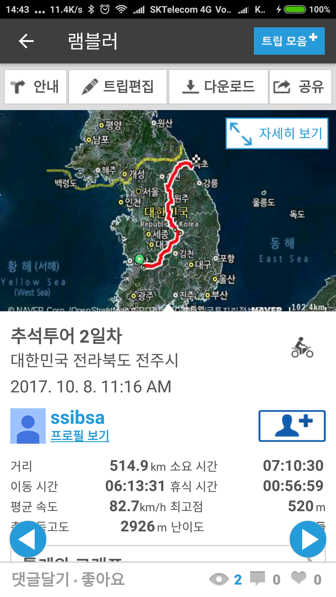 이번투어동안 1100키로 좀 더탔네요 ㅋㅋ