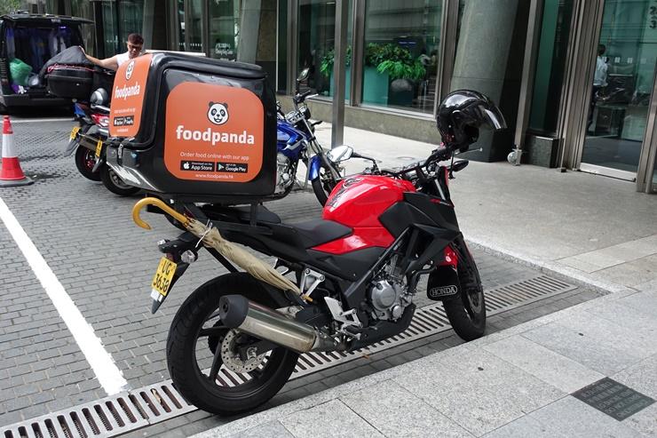 장국영 흔적을 찾다가 가게된 만다린호텔 근처에 배달바이크입니다. cb를 타고 우산은 저렇게 달고 다니더라구요.