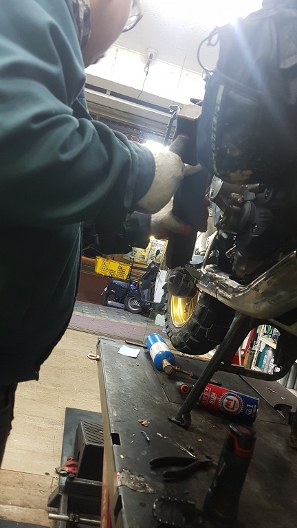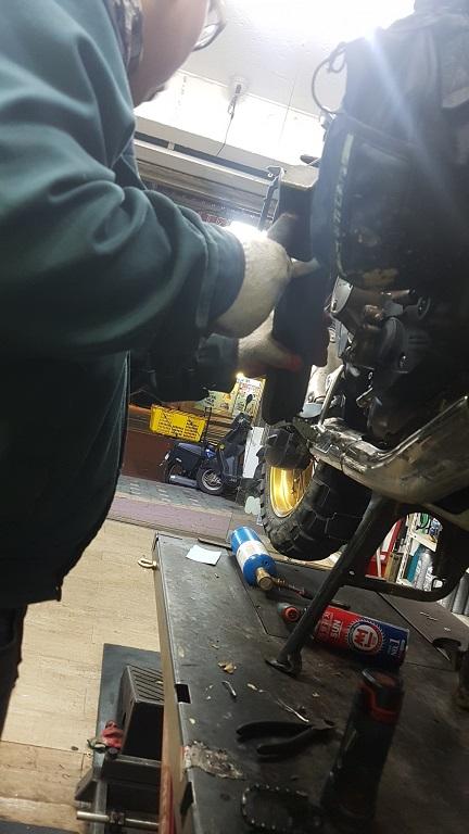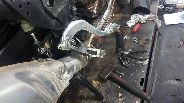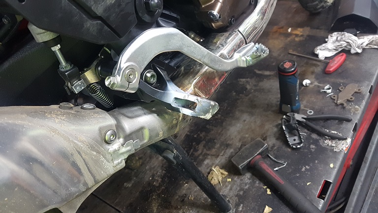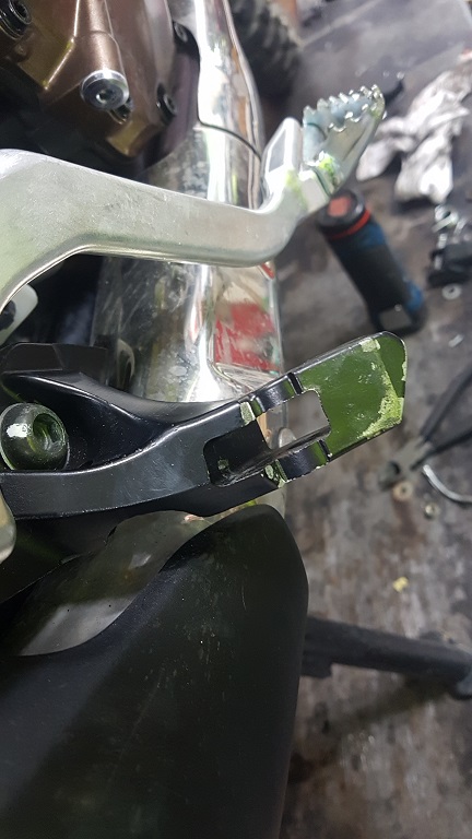 하지만 패그가 휜게 아니라 그 아래 패그와 머플러를 잡아주는 브라켓이 휜것이었습니다.