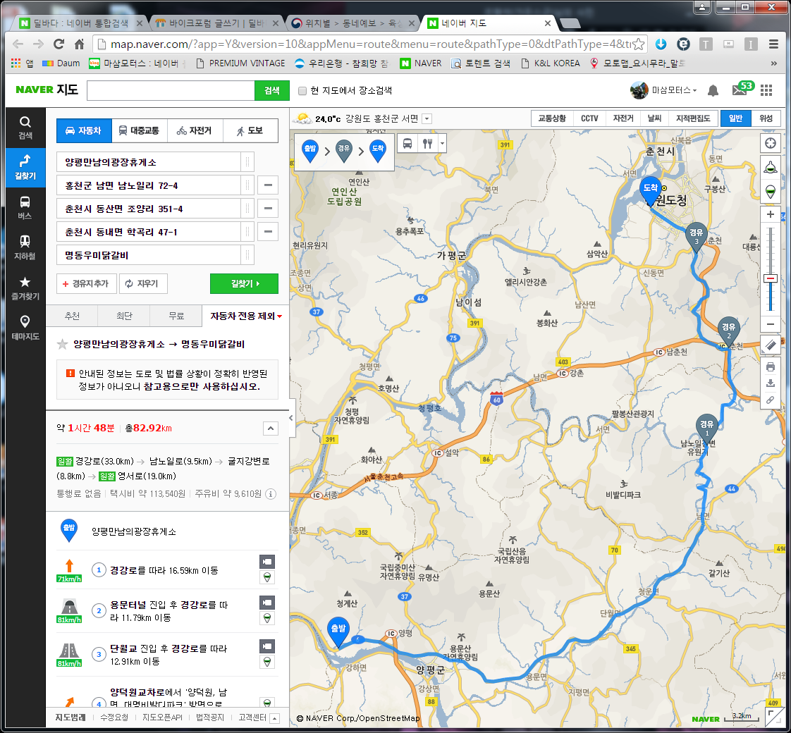 원주는 포기하고 양만장에서 홍천경우하여 춘천갈려구요