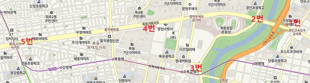 왜냐면 경인고속도로입구(1번) - 목동교(2번) - 목동지하차도(4번) - 화곡고가(5번) 길은 자동차전용으로 알고 있거든요.