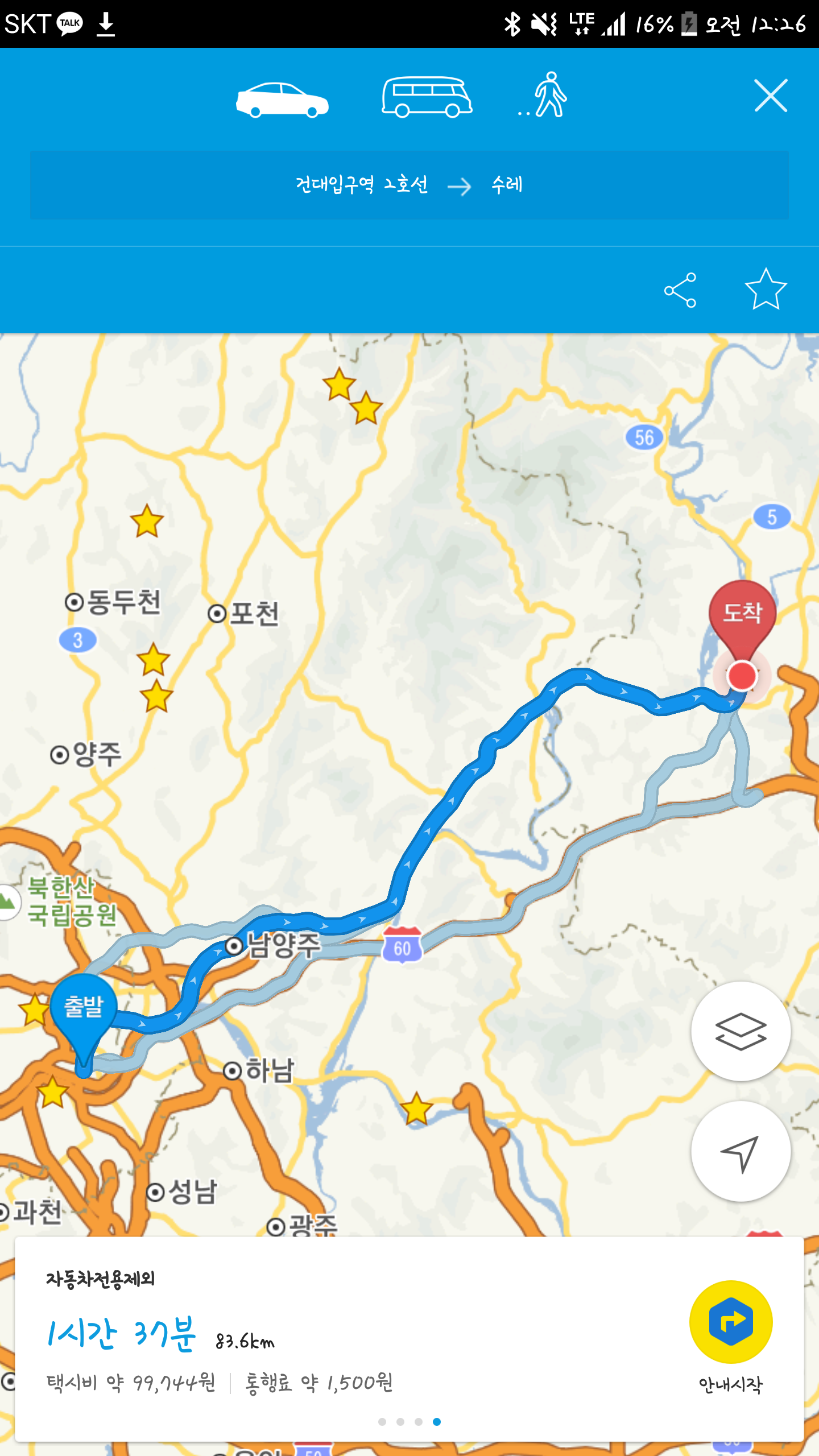 주로 광진구에서 출발하는데 현재로선 네비의 도움을 받아 워커힐을 지나 구리시내를 뚫고 남양주시내를 뚫고 다니거든요..