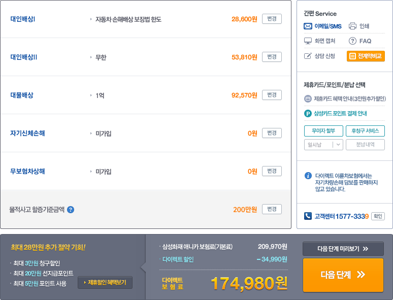 위 두 보험은 전년에 비해 각각 34.5%(130,120 -> 174,980), 21.9%(140,010 -> 170,650) 인상됐어요ㅠㅅㅠ 무사고임에도 불구하고 말이죠.