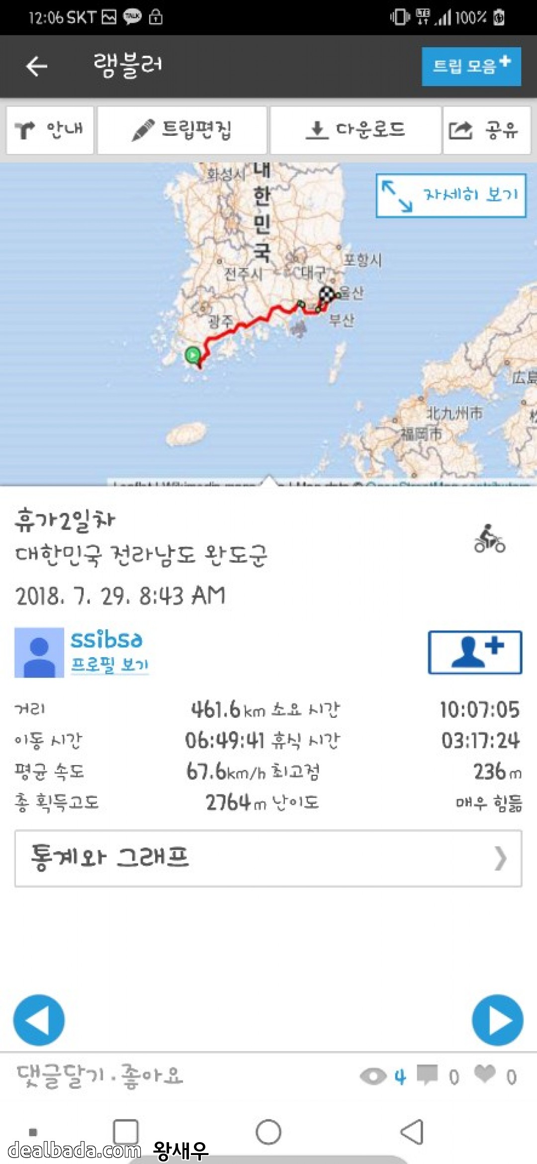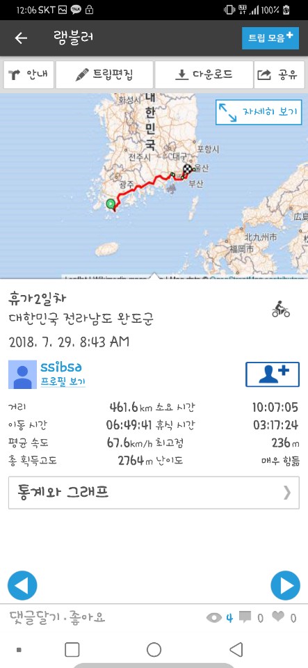 2일차에 461km주행하셨네요....초인적인 체력^-^)b