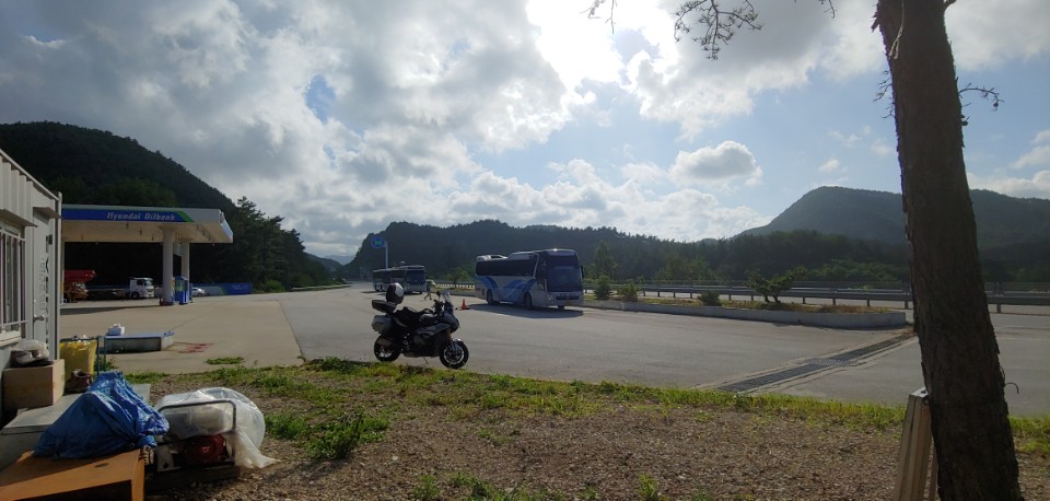 너무나 뜨거워 삼척 어디쯤의 주유소에서 기름넣고 숙쪽의 그늘로 대피해 더위를 식히고 다시 출발합니다.