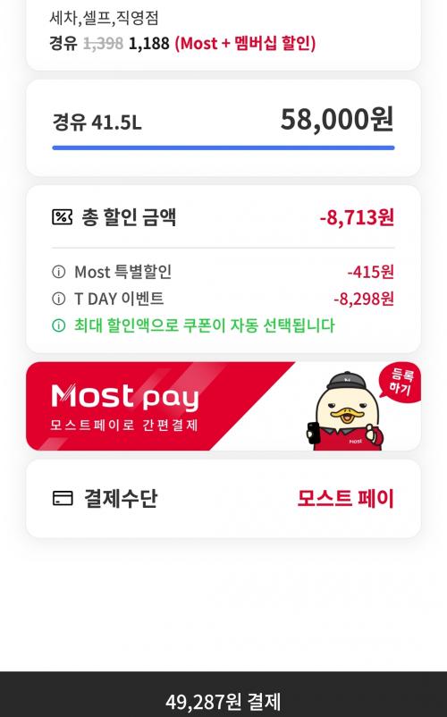 most 앱을 통해 주유하시면 리터당 200원 할인됩니다.