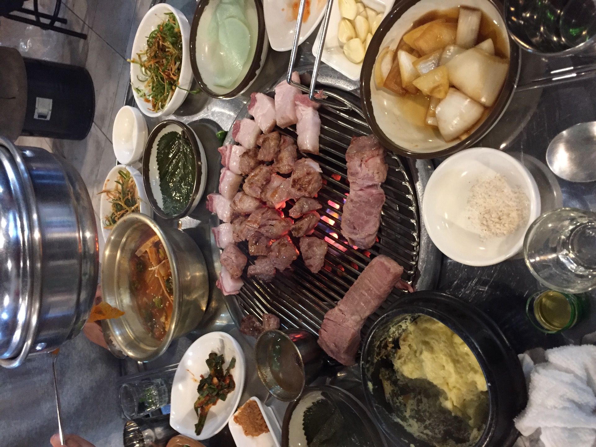 고기에, 회에, 소주에, 잔치국수에, 순댓국인가요?