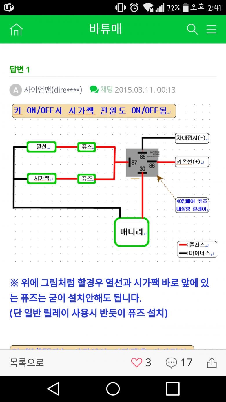 말씀대로라면 릴레이로 시거잭과 열선을 작업하는게 좋을거 같군요..자가정비로 배워서 diy해보려고하는데 한계가 있네요ㅜㅜ