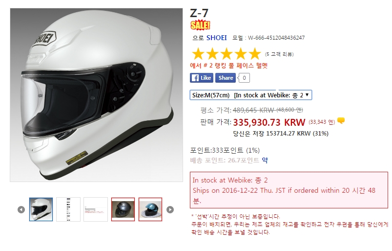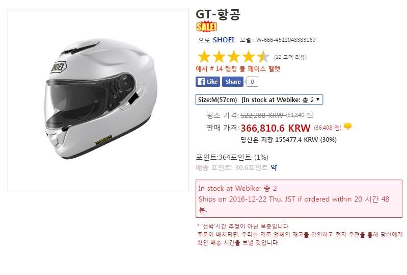 관세8프로+부가세10프로에영...바이크안전장구로 등록하면 그렇구요..재수좋으면 무관세도;;; | ||