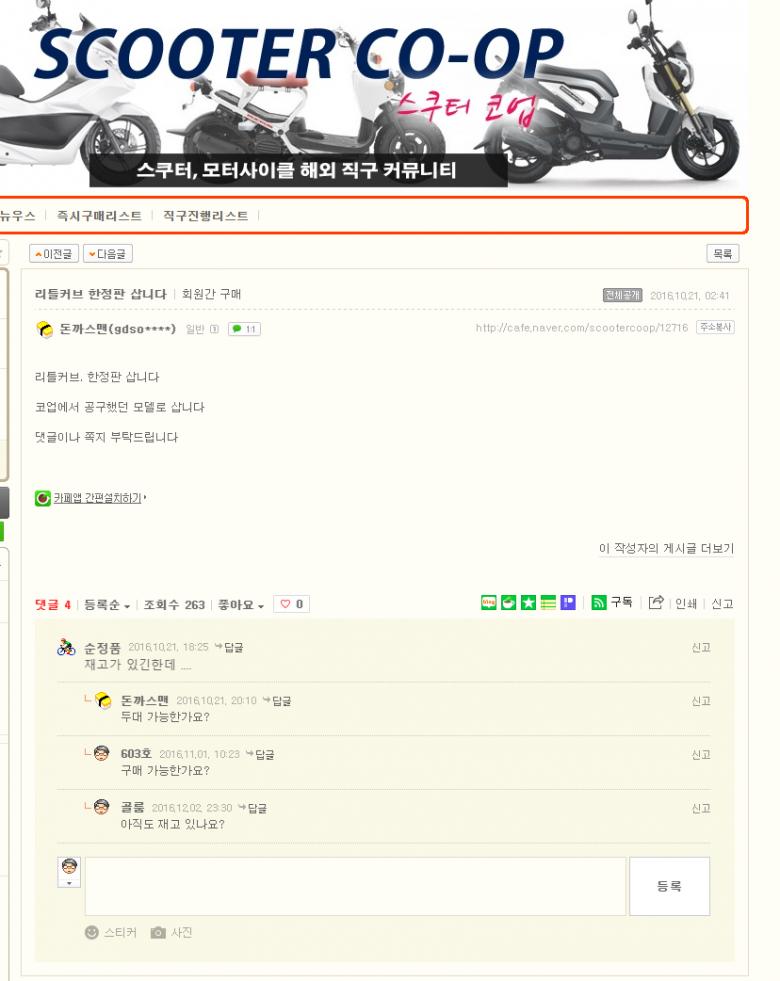 여기 가입도 했어요 ㅎㅎ. 일단 신품은 가성비도 떨어지고... 슈퍼커브로 다시 알아볼까... 고민 중입니다 ㅠㅠ 답변 감사합니다~
