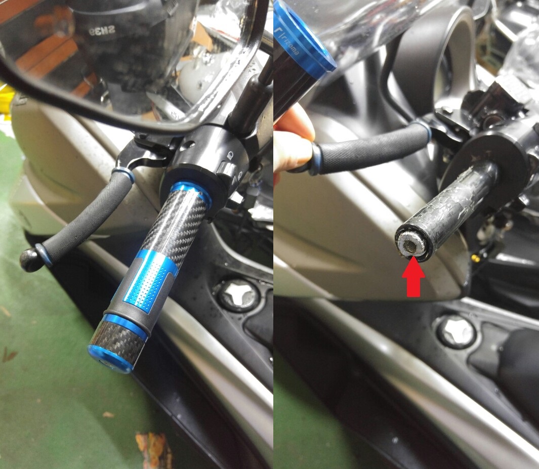 그립을 제거하고 나니, 핸들바 안 쪽의 파츠(나사형 바엔드 고정을 위한 파츠) 때문에 새로 구입한 바엔드(앵커형)를 장착 할 수가 없어서 힘으로 빼냈습니다.