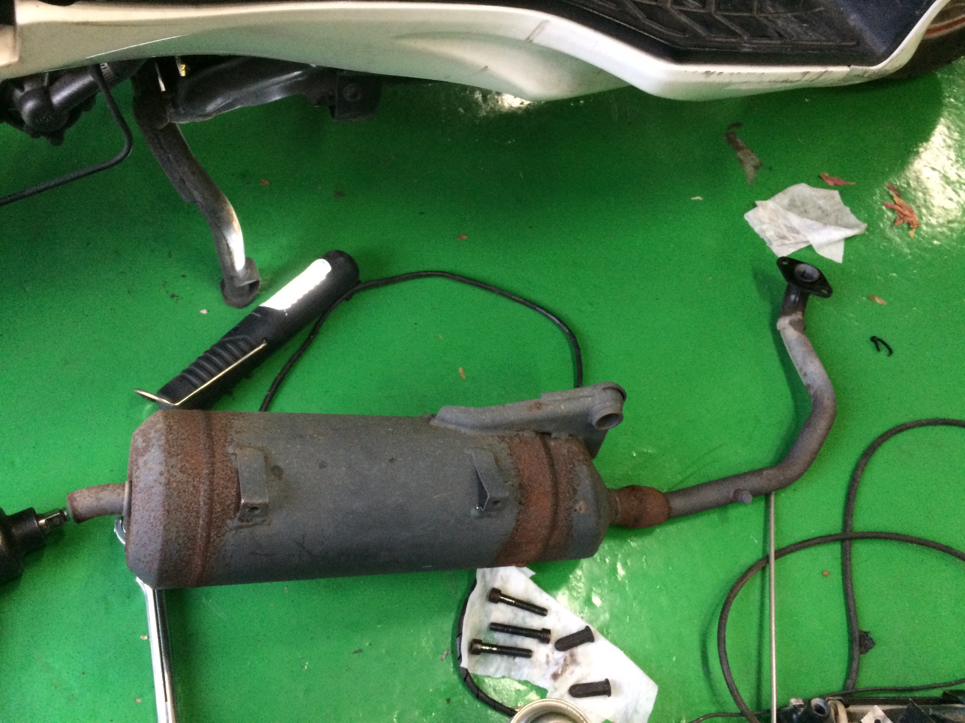 보통 머플러는 엔드만 탈거되는데 아마 배압이 새는 문제로 전 작업자가 앤드를 매니폴드와 용접을 해놨더라구요. 비타민씨를 하나 찾으며 매니폴드를 탈거 했습니다 너트는 12미리로 기억하며 개스킷이 없던데 딱히 매니폴드 쪽에 배압은 문제 없는 것 같아 일단 그냥 놔뒀습니다. 녹이 많이 생겼네요 시간나면 내열페인트 도색해야겠습니다.