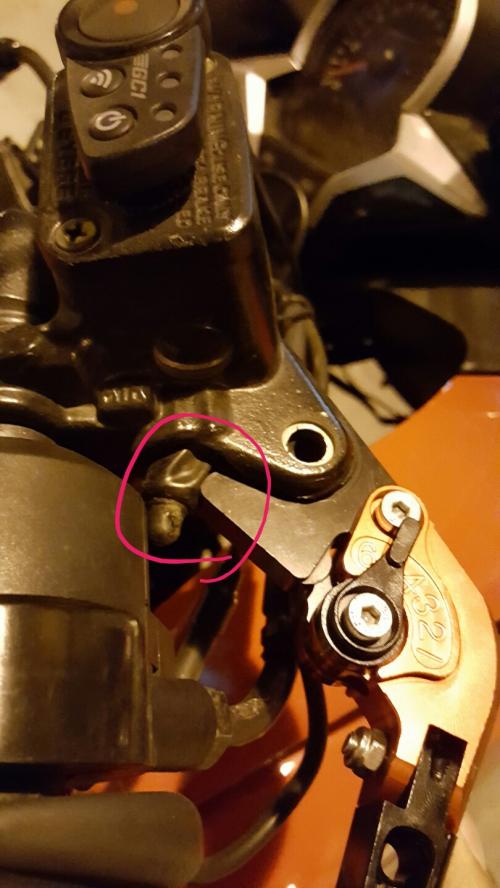 절삭레버 장착하는데 우측 브레이크 부분에 뾰족하게 튀어나온 부위는 어떻게 해야하나요??