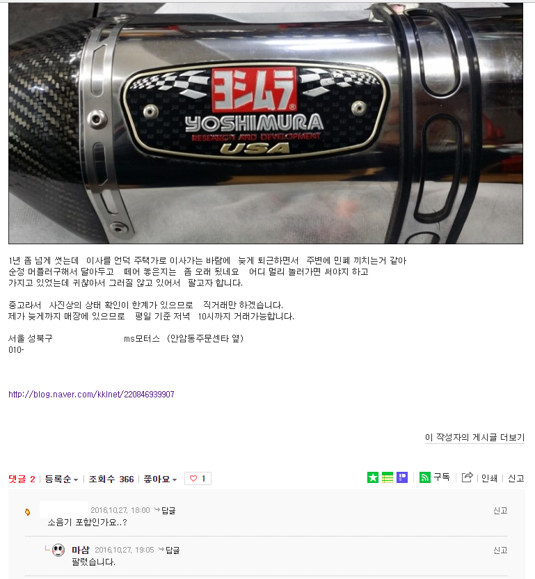 sr400 카페를 보면 페이튼 뭐시기 인증 머플러를 거의
