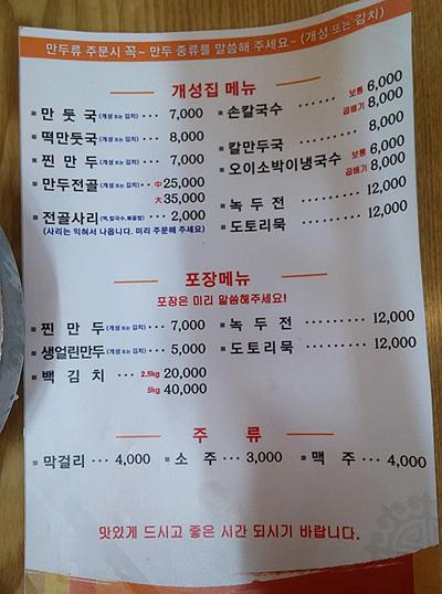 첫 방문이라 잘 몰라서 인터넷 검색해서 많이 먹는 칼만두, 오이소박이냉국수(곱배기), 찐만두(반반)