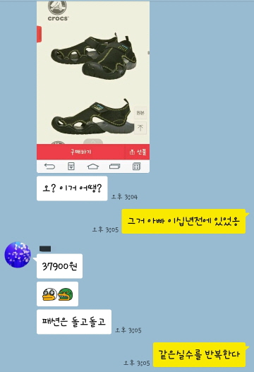 그리고 이건 저번에 와이프가 저 슬리퍼 골라준다고 보여준건데