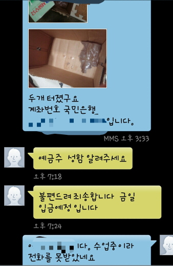 고객문의함에 남겨놨더니 번호로 사진이랑 갯수랑 계좌달라고 하더라구요
