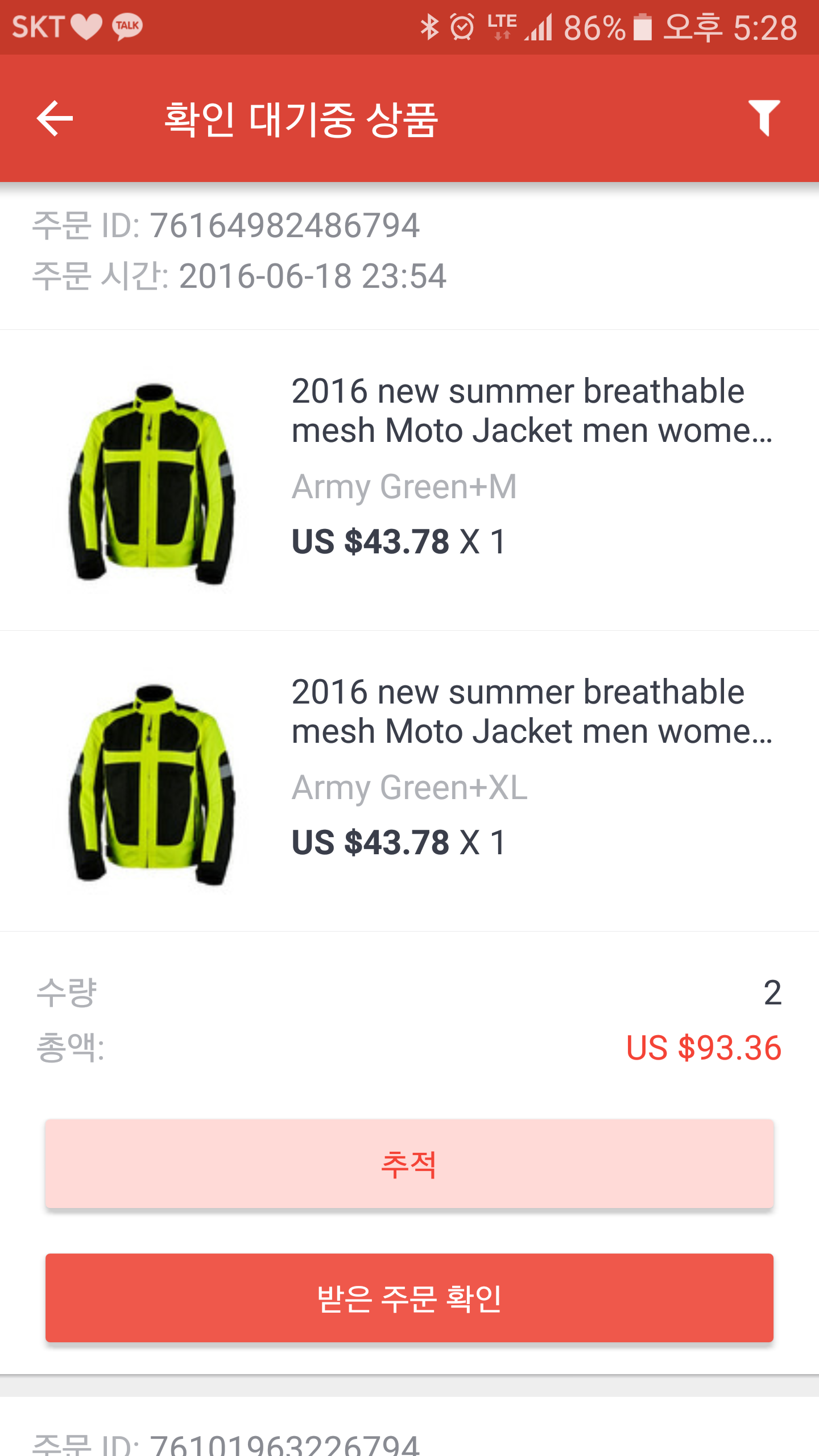두벌사는데 ems까지 93달러요 ㅎㅎ 10만원정도?