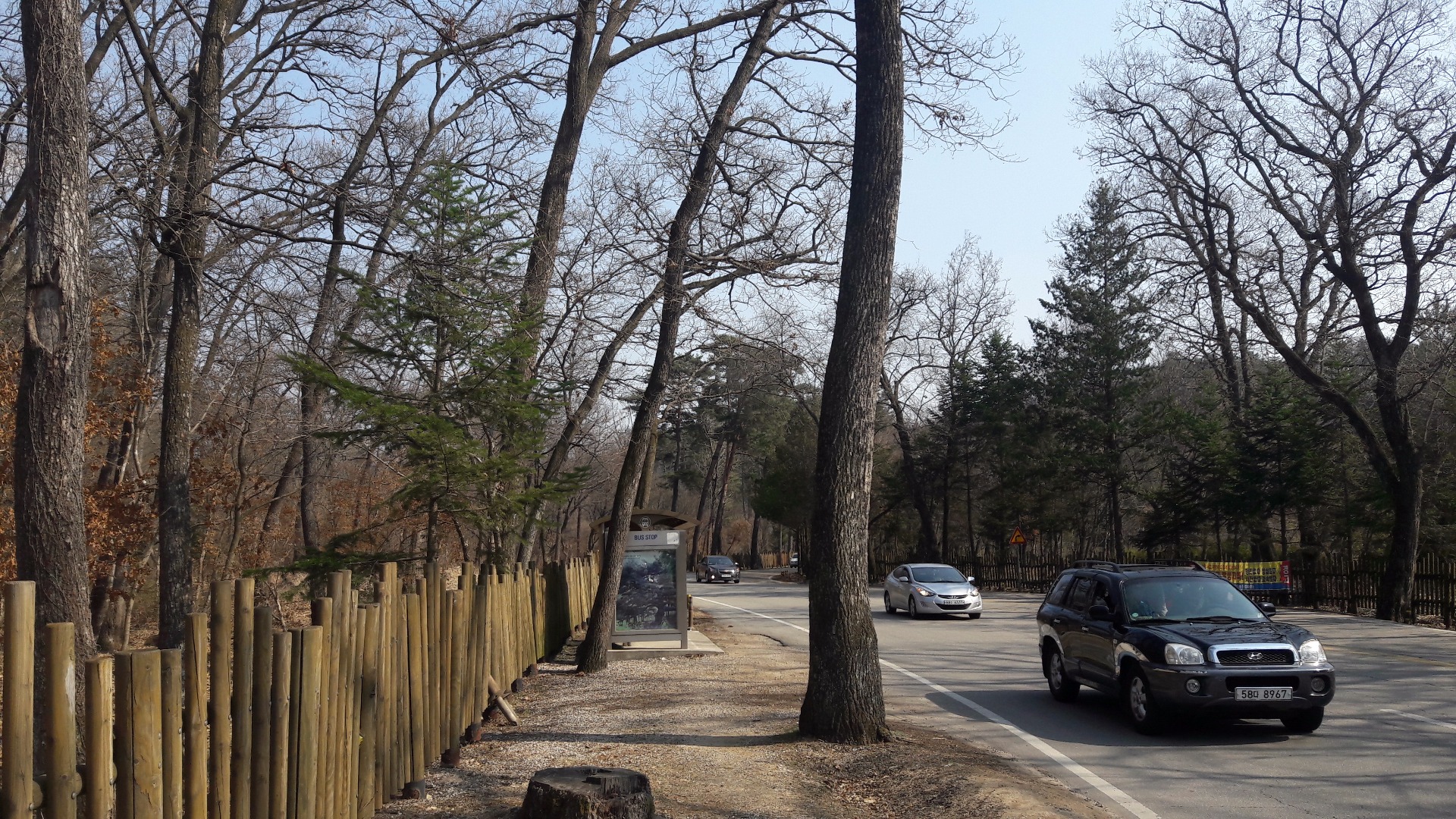국립 수목원 길을 지나 고모리 저수지에 왔습니다.