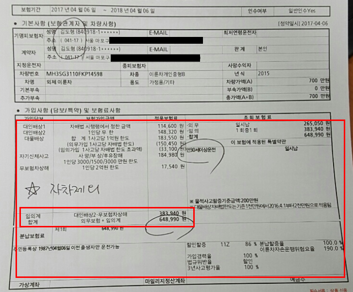 전 삼성다이렉트에서 대인 가입이 안되네요 ㅎㅎ |