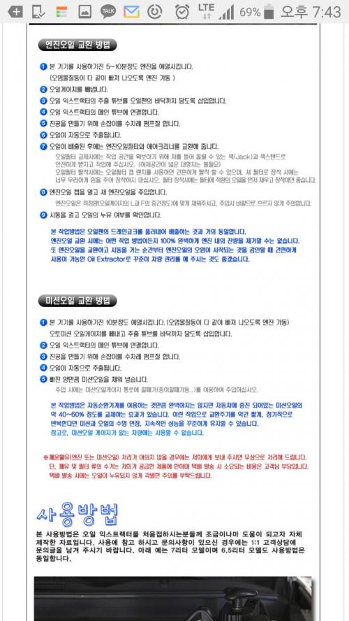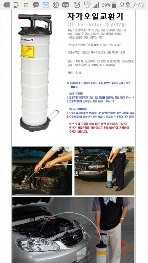 바이크도 저거로 빼시는분이 있어서(그분말로는 다빼고 드레인볼트뺐더니 오일이 하나도 안나왔을정도로 석션이 잘된다고 해서) 믿고 결제했네요~,~;;나중에 후기올려보겠습니다~~^^