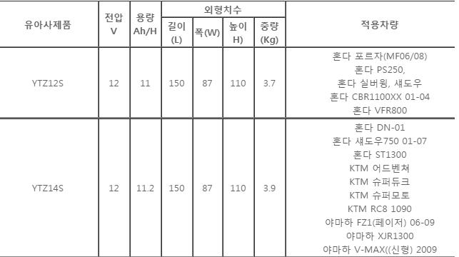 유아사 배터리 YTZ12S 와 YTZ14S의 차이점이 궁금해요.. > 바이크포럼