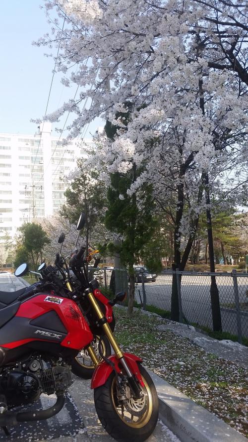 그리고 복귀하는길에 대명리조트길로 오는데 제대로 벚꽃이 피었더군요~~~^^ 거의 5km에 이르는 길 양옆으로 만개한 새하얀 벚꽃잎은 제대로 눈과 마음을 정화시켜 주었네요~~ 이상 즐거운 투어후기였습니다~~~~^-^)/