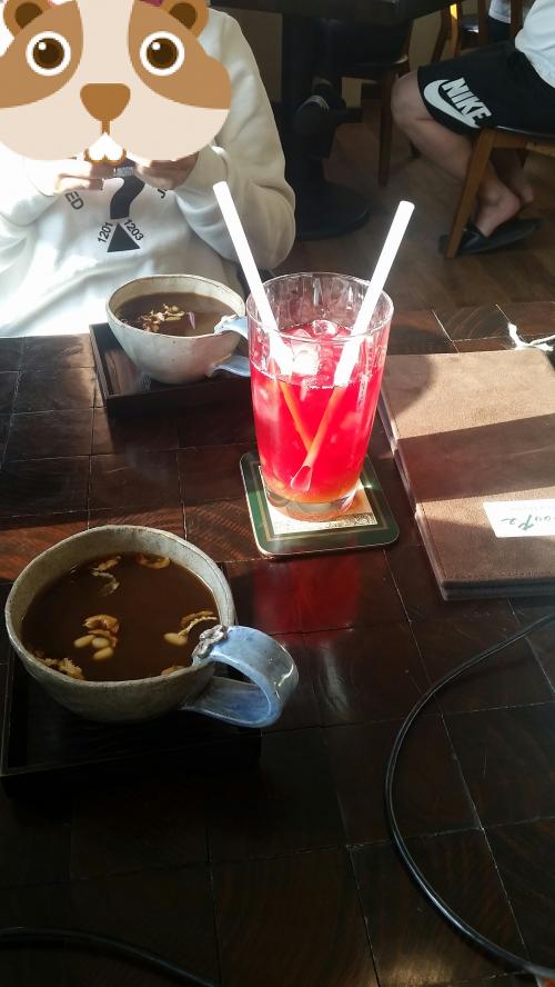 대추차를 시켰는데 가게 신메뉴인 수제차(히비스커스에 유자를 섞은)를 서비스로 주셨어요~^^ 대추차는 깊은맛에, 수제차는 첨 맛보는 신세계였네요~^^정말 맛있었습니다~~~~ 그런데 가게에 혼자계신채로 계속 오는 손님들때문에 짧은 수다가 아쉬웠습니다~
