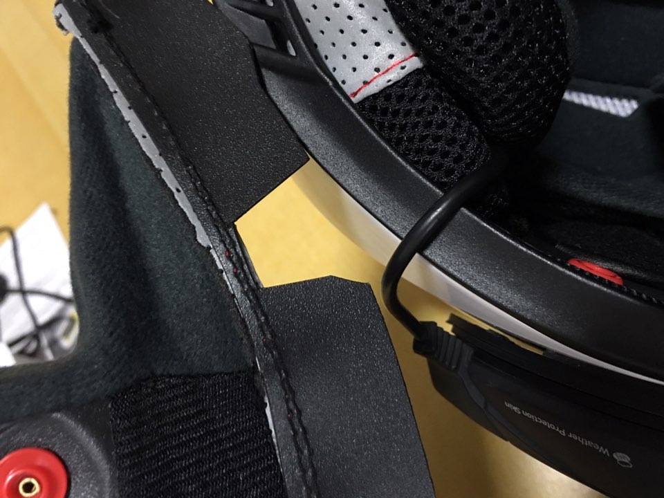 MT : 블루투스를 설치할 가능성은 전혀 고려하지 않고 만든 헬멧같아요.. 스피커를 붙여야 할 자리에 이상한 털(?)같은 처리가 되어있어서 그부분엔 3M 초강력 양면테이프도 붙질 않습니다ㅡㅡ; 억지로 그 옆에 장착했습니다. LS2와 마찬가지로 볼패드의 저 부분을 잘라줘야합니다.