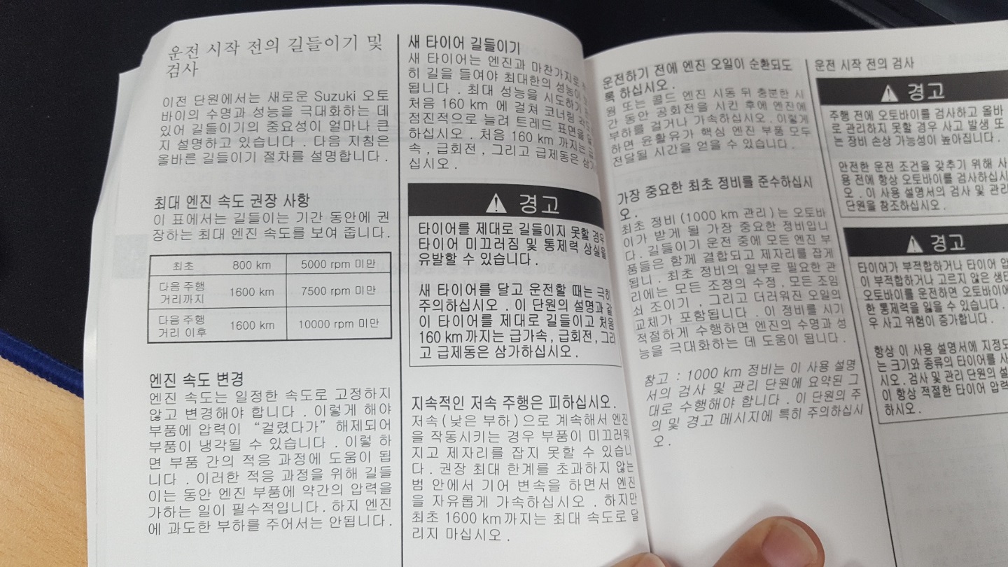 음 메뉴얼엔 1600km까지가 길들이기군요 +_+