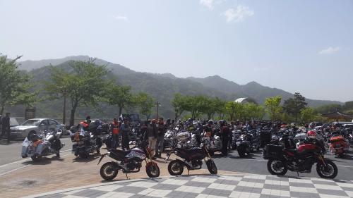 평화의댐입구에 도착하니 웬 할리가 그리많던지...어림잡아도 백대는 넘어보였습니다~아마도 할리동호회의 집결장소였나봅니다~수많은 할리들이 모여있는데 엠엑이 두대가 진입하니 다들 쟤들 모지(?)이런 눈빛이었지만 개의치않고 잠시 세웠다가 곧이어 "자 출발합니다~~"라는 소리에 화들짝 저희부부는 다시 바이크 시동걸고 바로 출발했네요ㅋㅋ 저 무리 중간이나 끝에 낑기면....어후....재빠르게 왔던길로 샤샤샥~